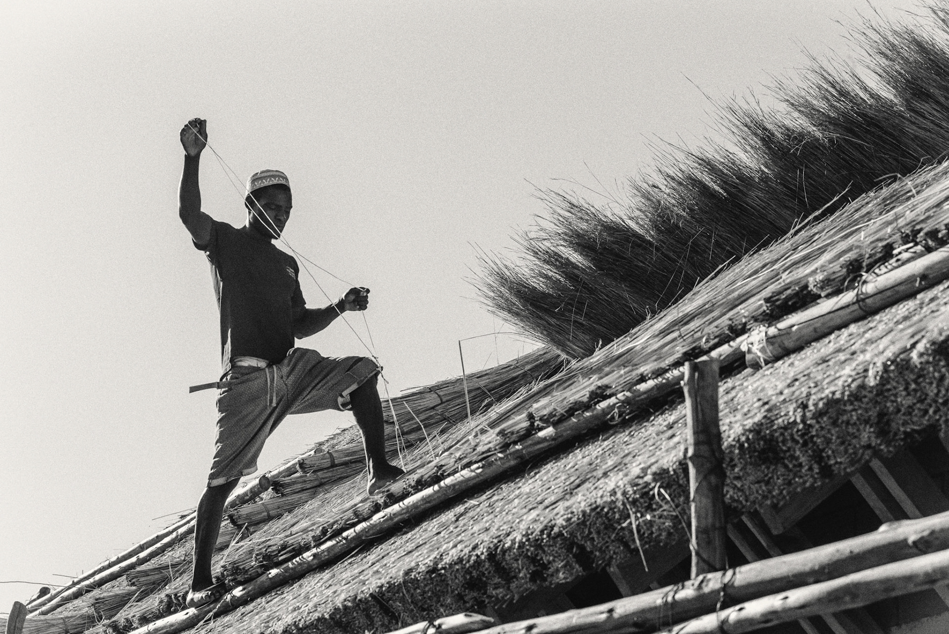 In Malawi sind traditionelle Bauweisen noch weit verbreitet. Im südlich gelegenen Dorf Sosola verwendeten lokale Handwerker Stroh aus der Region des Malawisees, um ein Studentenwohnheim zu überdachen.